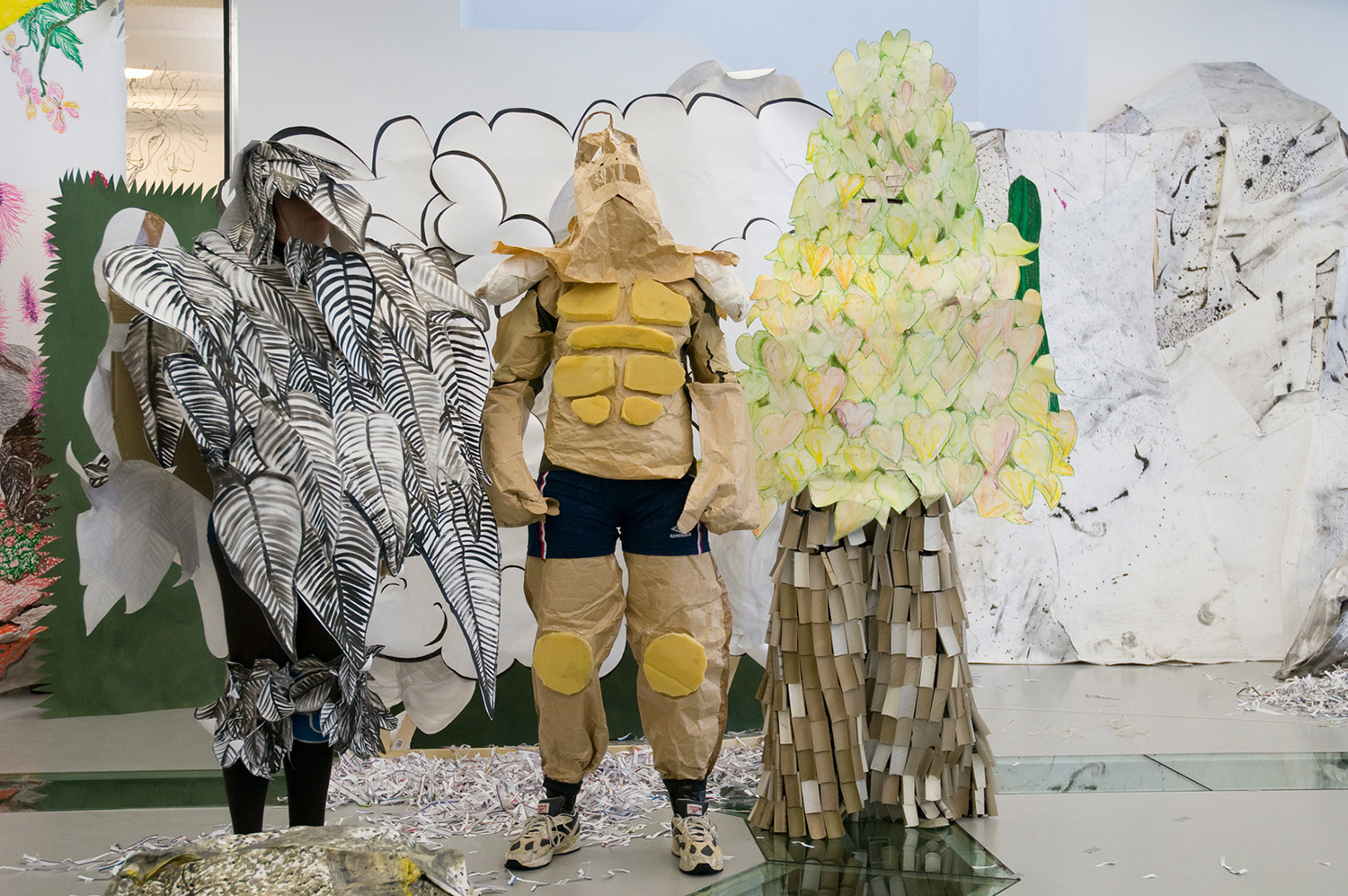 Het Harde Potlood legt gedurende openingsuren een papieren tuin aan die dient als decor voor hun voorstellingen.